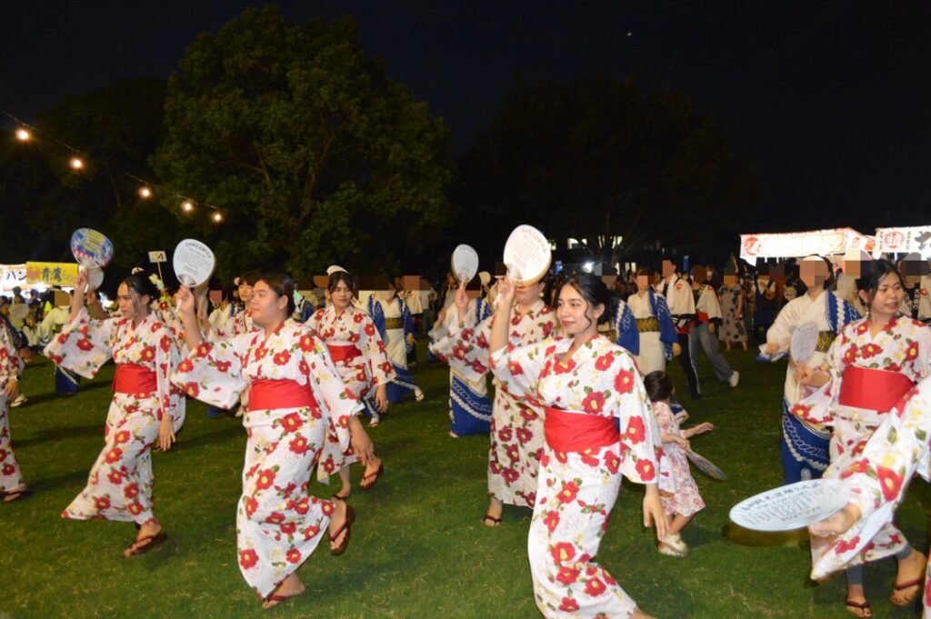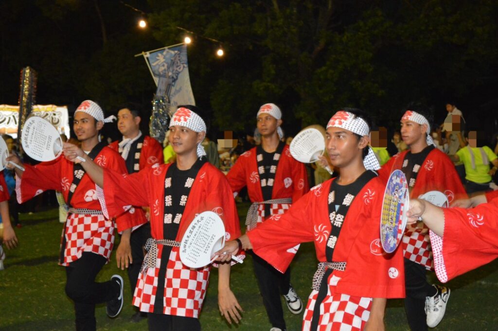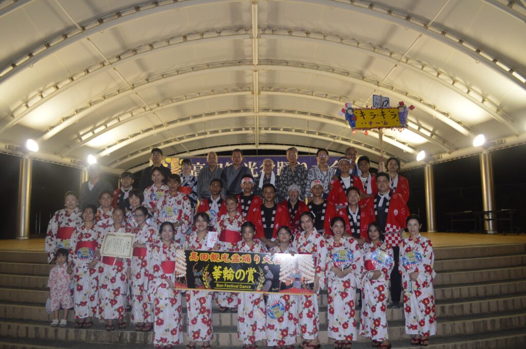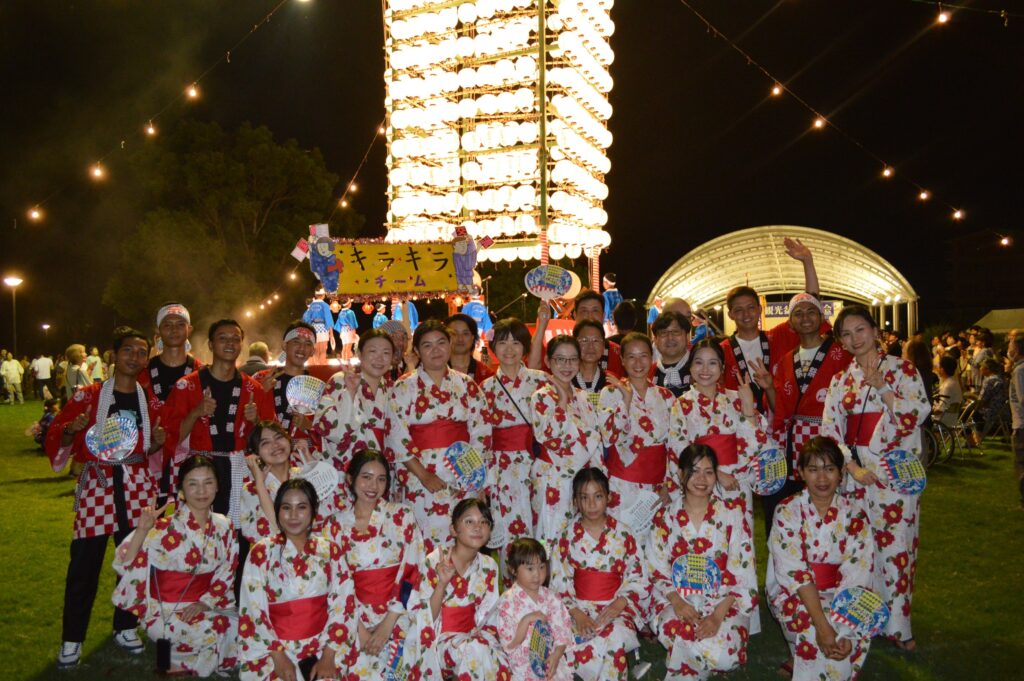 令和7年8月18日、中央公園で「高田観光盆踊り大会」が開催、幾重もの踊りの大輪が華やかに形成されました。高田観光盆踊り大会は、江戸時代から続く市の伝統芸能「草地おどり」(県選択無形民俗文化財)を楽しむ、市民総出の盆踊り大会です。会場には提灯で飾り付けされた特設櫓が組まれ、子どもから大人まで様々な団体が計28チーム、約530名が参加。豊後高田International Contribution事業協同組合(BIC)の外国人技能実習生たちも、昨年に引き続き参加の機会をいただきました。