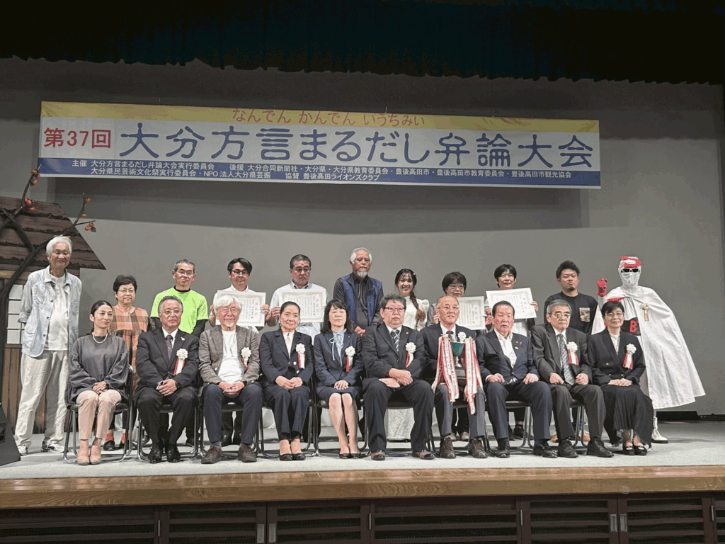 令和7年10月19日、豊後高田市中央公民館で、第37回大分方言まるだし弁論大会が開催され、市内外から多くの観客が集まりました。この大会は、言葉の豊かさと温かみを再認識し、郷土を愛する心を育み地域づくりに活かすことを目的に開催される市の恒例行事で、今年は11人の弁士たちが登壇。会場は大きな笑いに包まれました。