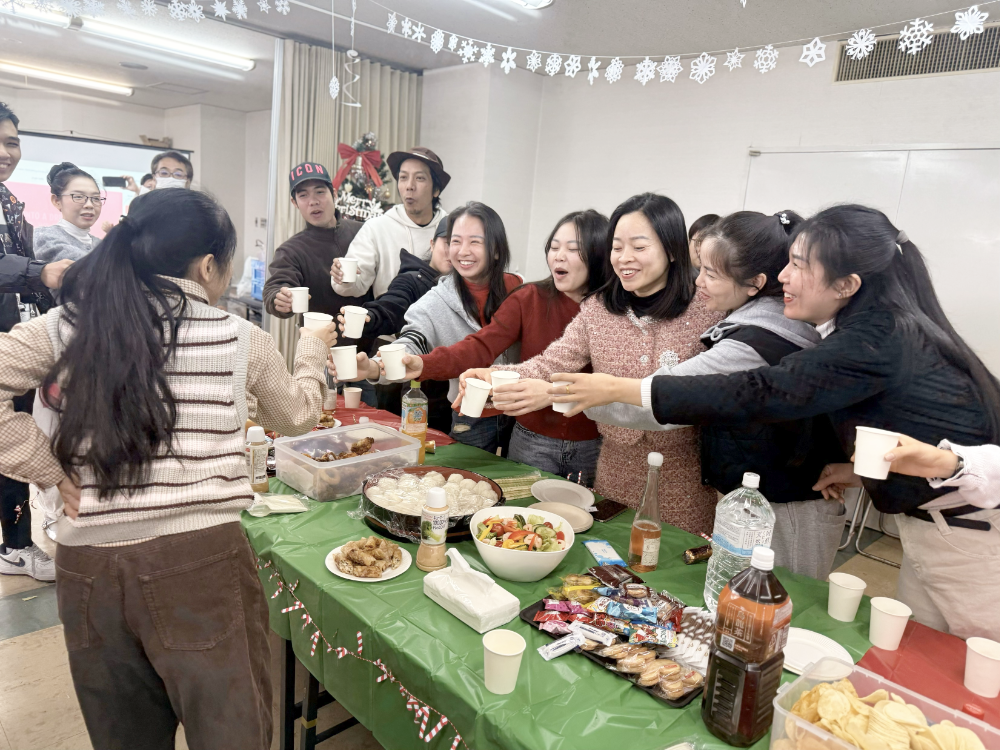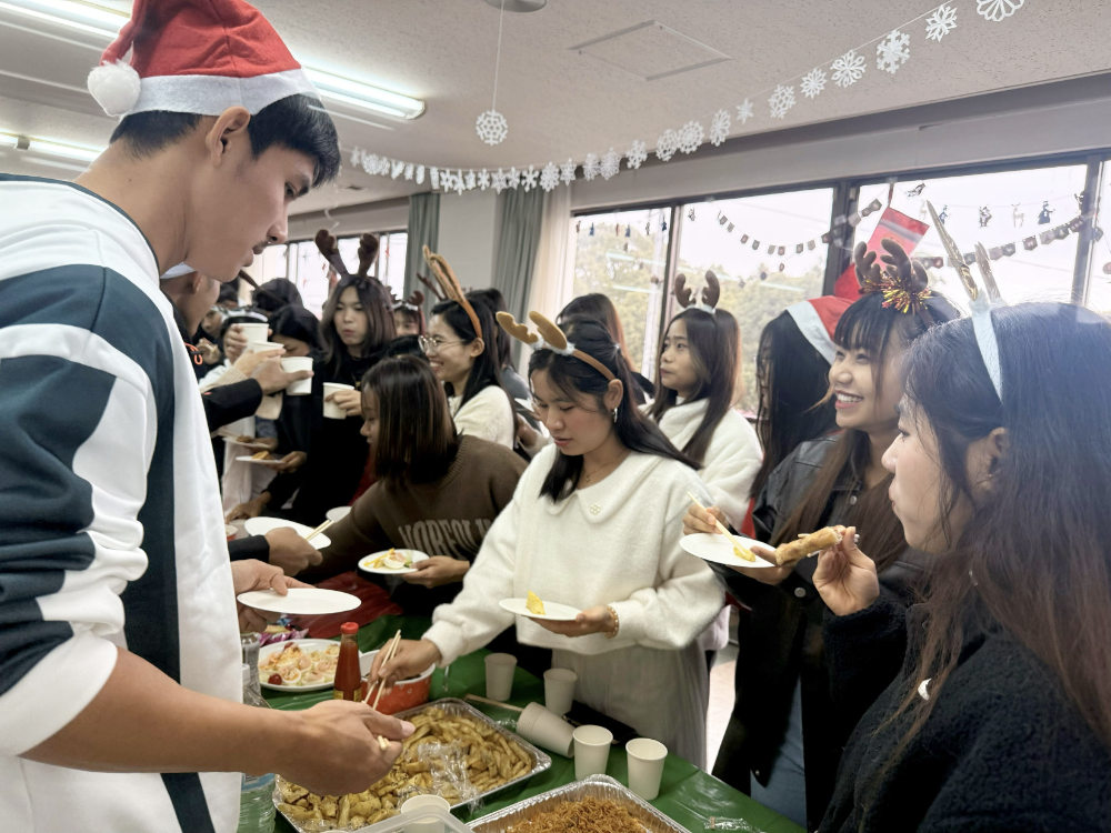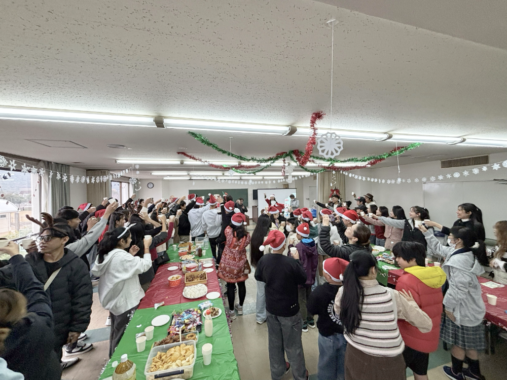 令和7年12月21日、豊後高田市勤労青少年ホームで国際交流クリスマスパーティーを開催しました。毎年恒例となったこのイベント。外国人技能実習生はもちろん、受入れ企業様、市役所、商工会議所、また市内の小学校や高校からもたくさんのご参加をいただき、90名近い人数で開催することができました。