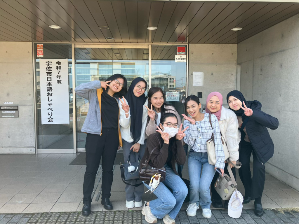 令和8年3月1日、宇佐市主催の日本語おしゃべり会が開催されました。宇佐市の企業様への入社を間近に控えた、先月来日したばかりのインドネシア人技能実習生6名と、宇佐市民図書館まで見学に行って参りました。各職場の方がたくさん応援に駆けつけていたようで、予備席までいっぱいになるほどの盛況ぶり。実習生たちは、外国人の方々が熱心に日本語を学んでいる姿に大きな刺激を受け、学習意欲も一層高まった様子でした。